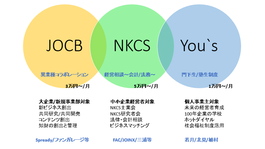 NKCS/You’s/JOCB intra 2024年9月2日 ※新原理事長/学長/会長の組織戦略考案中 NKCS は、経営相談支援 You’sは、塾生や門下生育成 JOCBは、異業種コラボレーションと知財管理 組織は、まるで家族のようにアットホームで、成長を続ける 投稿ナビゲーション 前 前の投稿: セールスツールの開発 TIS社連携次 次の投稿: 2024年9月現在のジーニョの収益源(展開サービス)